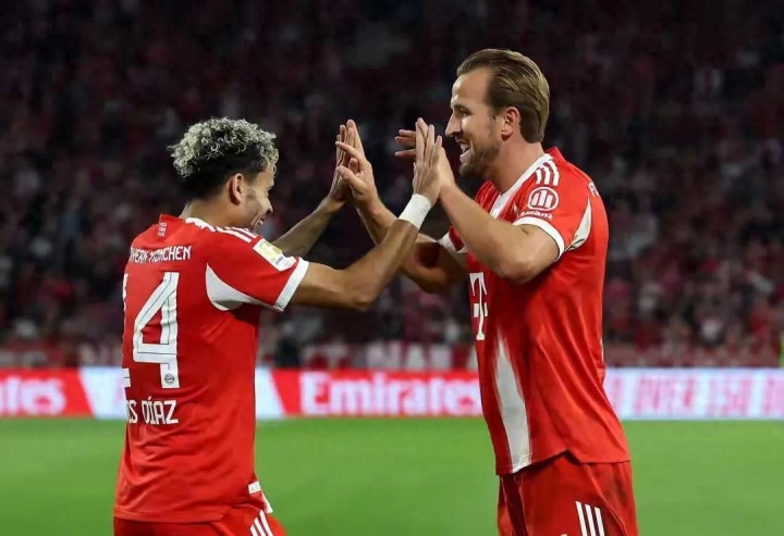 第76分钟,哈里凯恩罚丢点球。第90+4分钟,拜仁前场左侧起球传中,哈里凯恩后点高高跃起头球破门,实现了自我救赎,打进了绝杀进球。