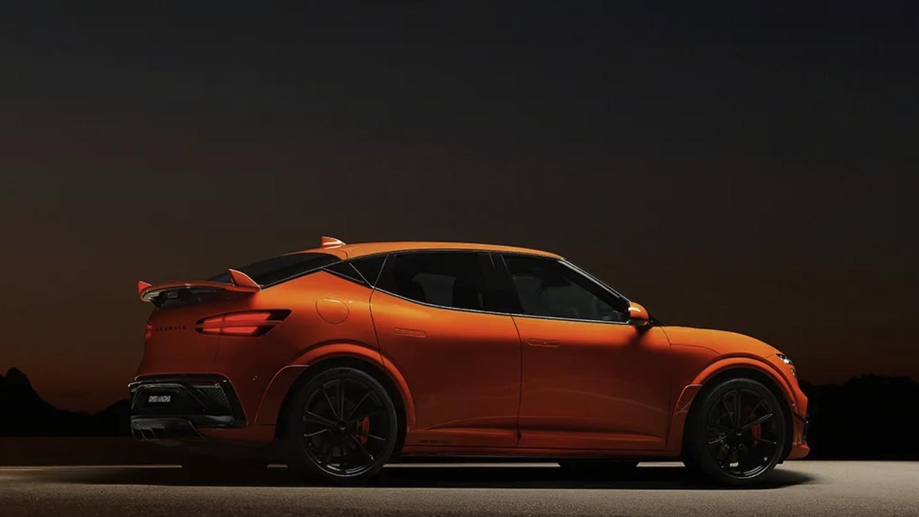 新车的外观部分在普通版的捷尼赛思GV60基础上进行了部分升级,前脸部分,大灯造型和普通版一致,双条形的分体式灯组有着很高的辨识度。前杠换装了全新的造型,使用了大面积的黑色网格状格栅,两侧带有突出的扰流造型。